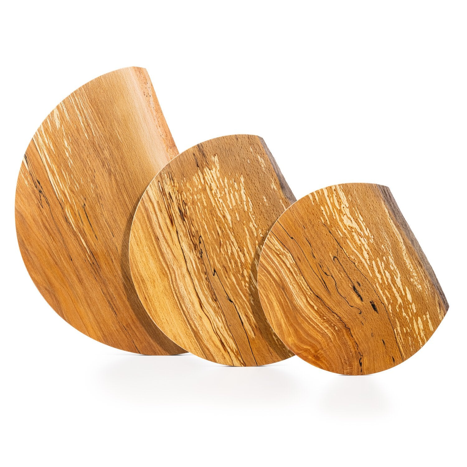 A beautiful and unique trio of pieces. A gorgeous half circle board combined with the stunning texture of the wood’s bark. This trio will take the centre stage on any table and make a perfect gift.
