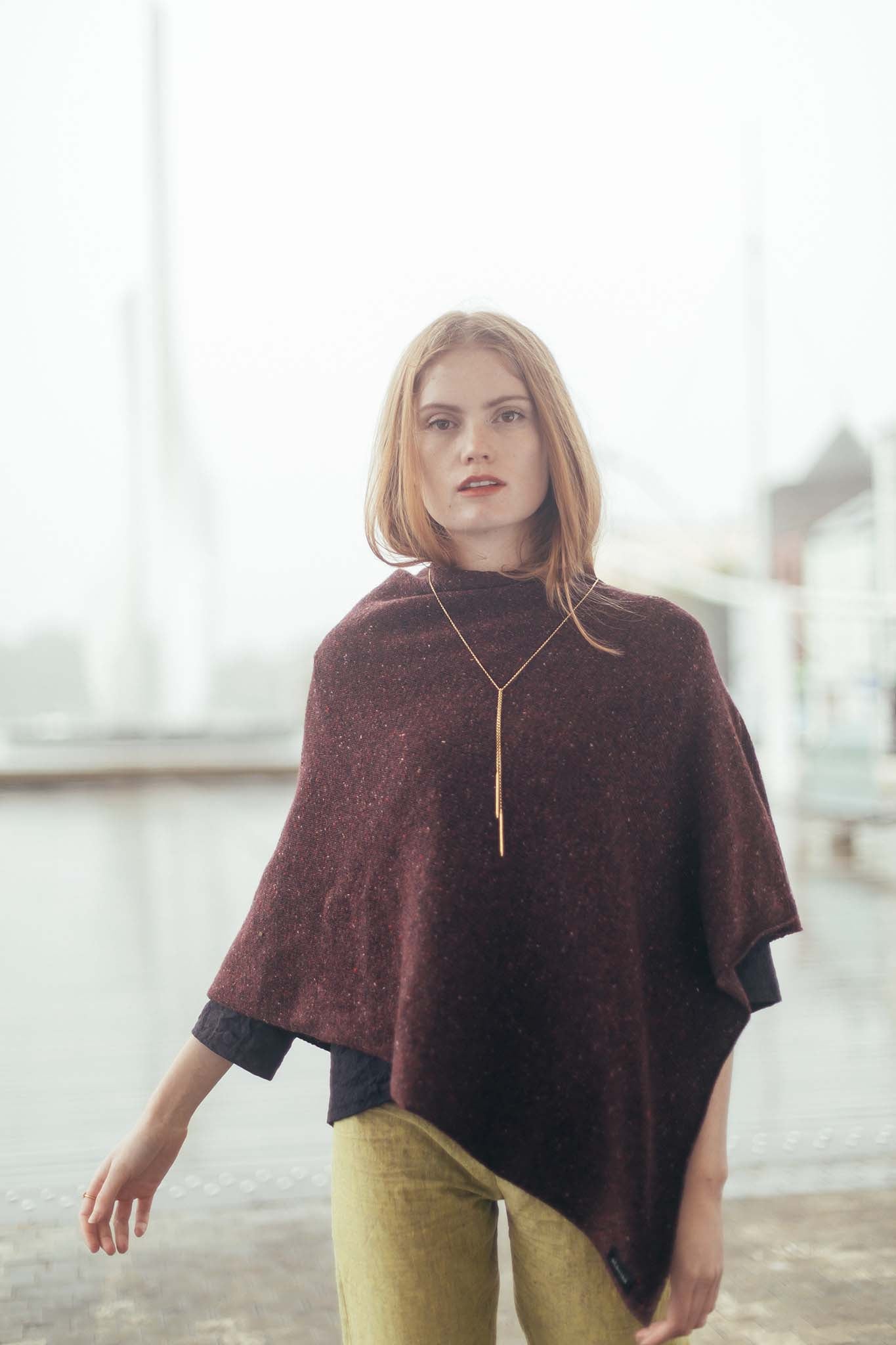 Our Benvoy Poncho is a modern feminine take on traditional Irish knitwear. Styled in a flattering design to suit any body shape, the knit poncho slips over your head with a slit on one arm to effortlessly drape yourself in wool.