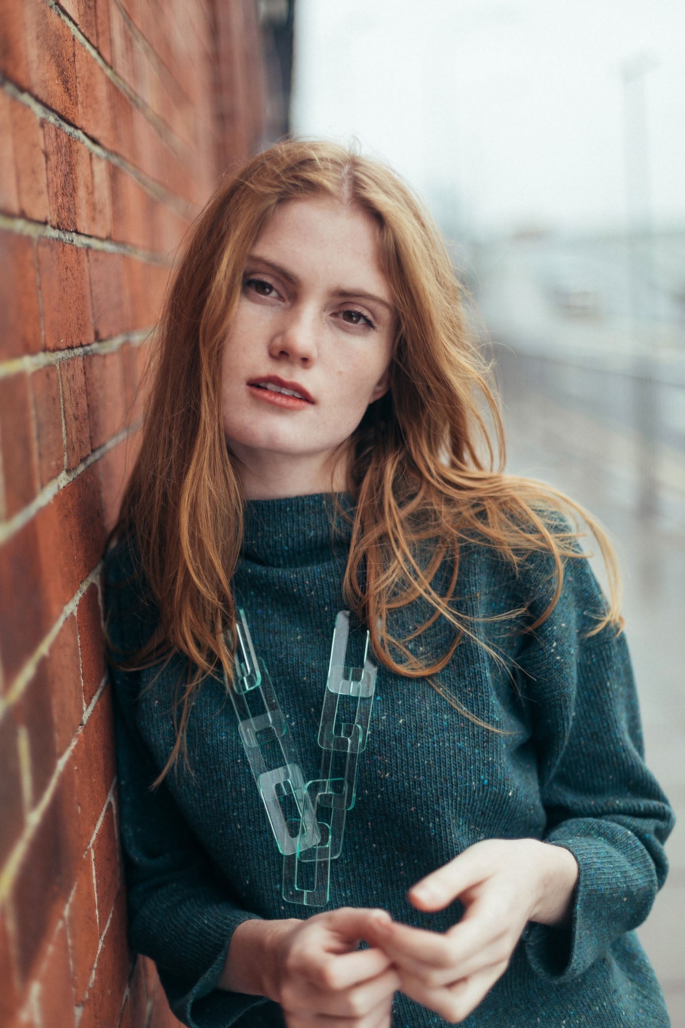 Katelyn is pictured wearing the Guillamene Jumper in Denim Blue.