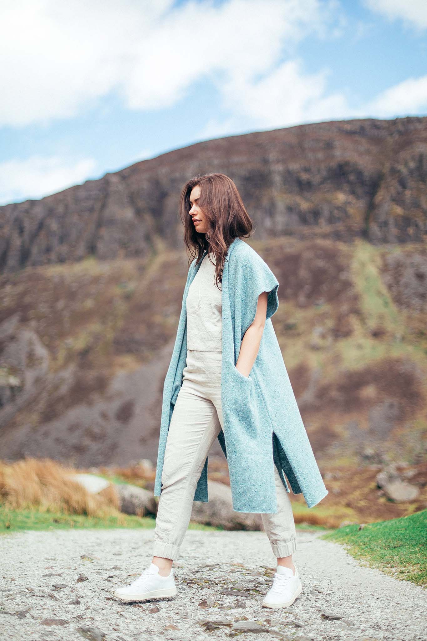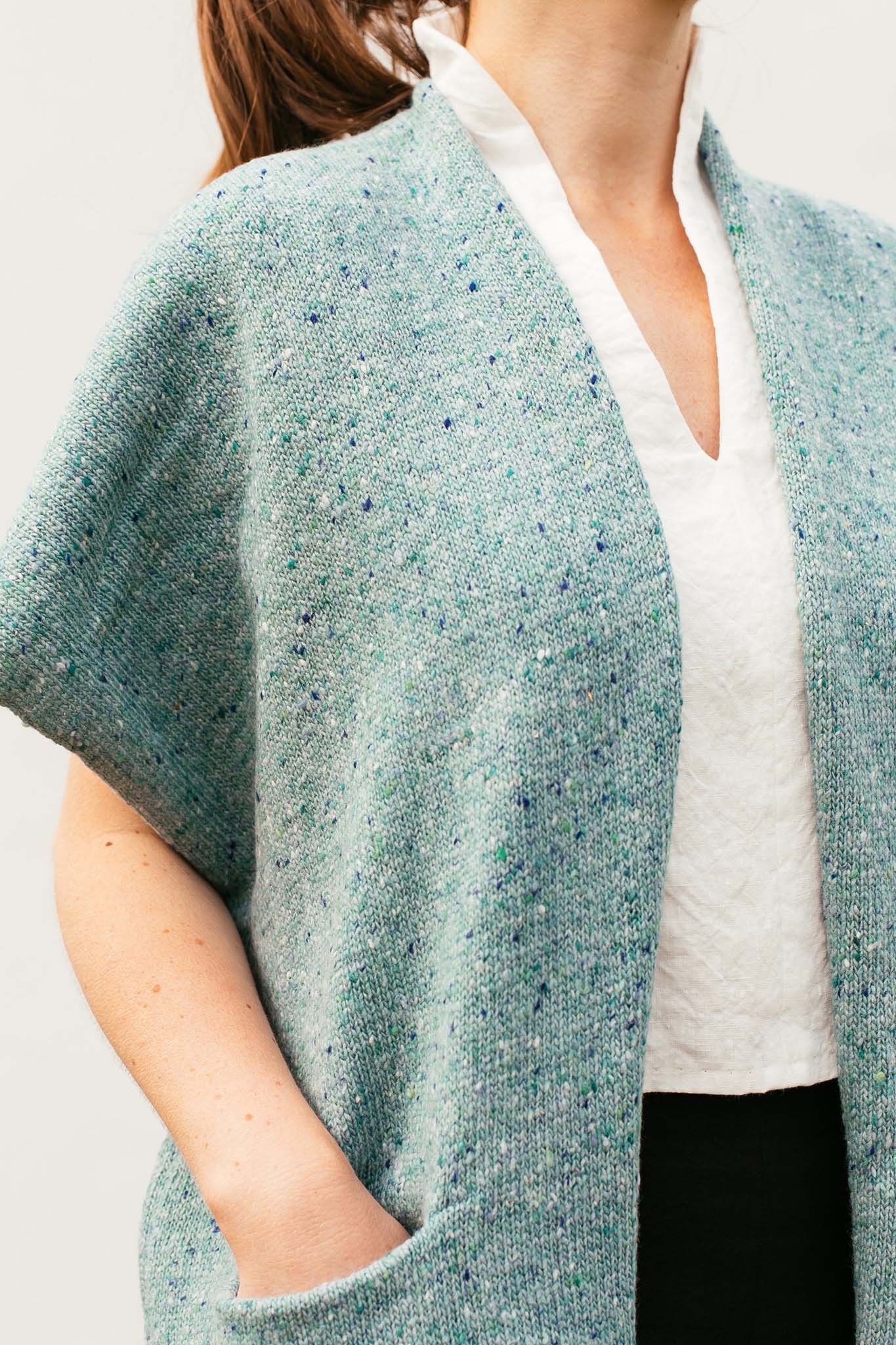 Just as a breezy day at the beach after a surf, this sleeveless style creates a fluid silhouette naturally draping off the shoulder for an extra relaxed fit. The Kilmurrin Cardigan is loose and versatile, easily worn over a blouse or layered on knits in the colder months.
