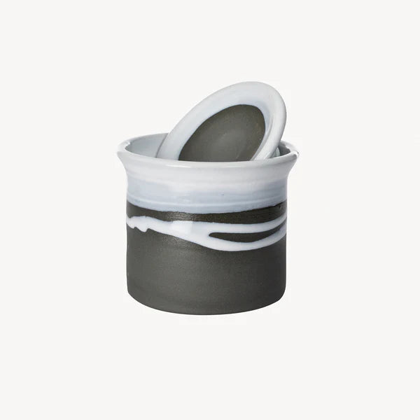 Fluid white lines with a unique matte grey slip mean that this handmade piece is the perfect addition to any kitchen or dining room set. Each piece of pottery is completely unique due to nature of Paul's traditional handmade methods, variations may occur in size and colour.