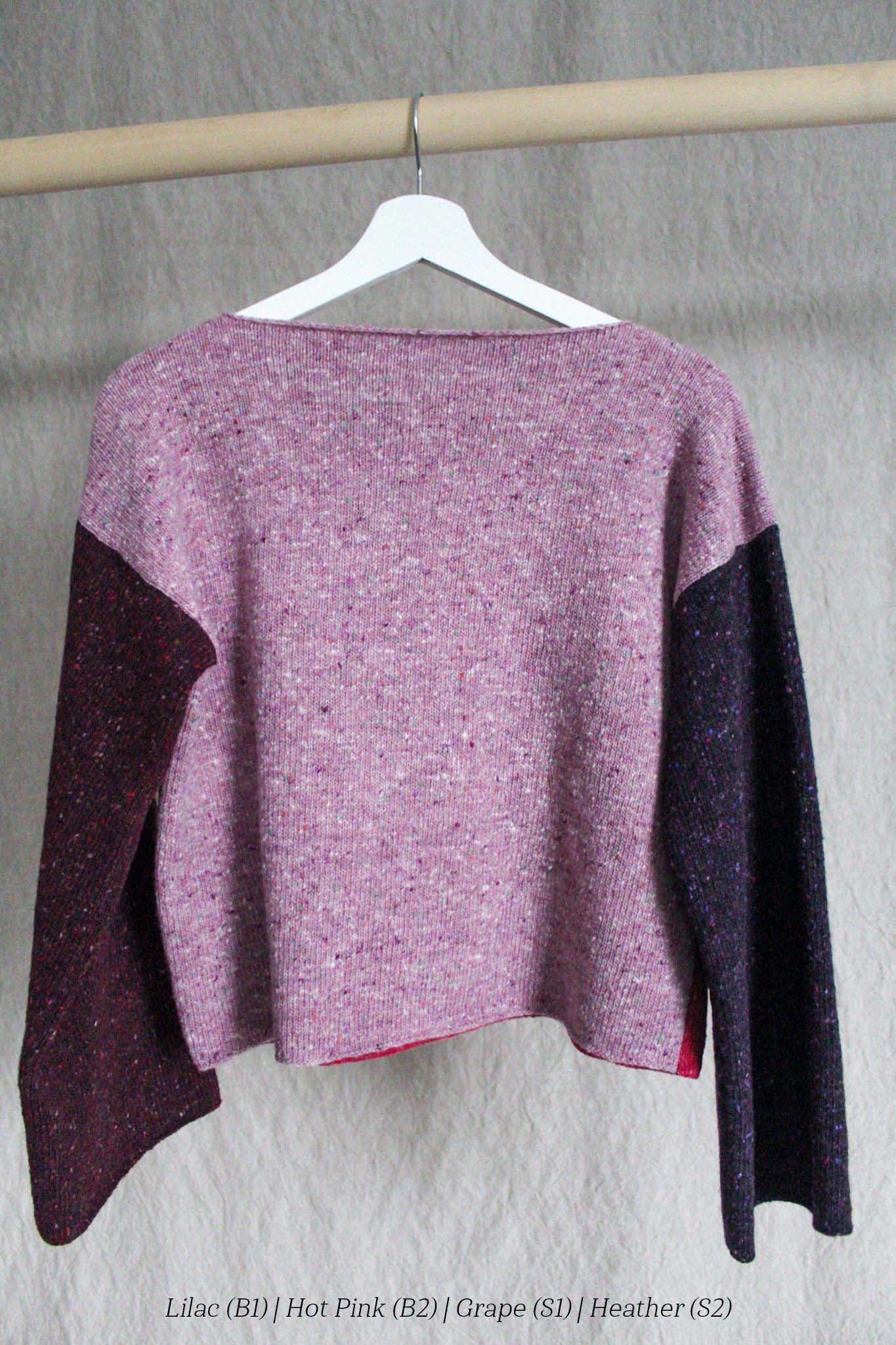 Mollie is wearing the same style in Grape & Heather body with Lilac and Hot Pink sleeves - Grape (B1) | Heather (B2) | Lilac (S1) | Hot Pink (S2)